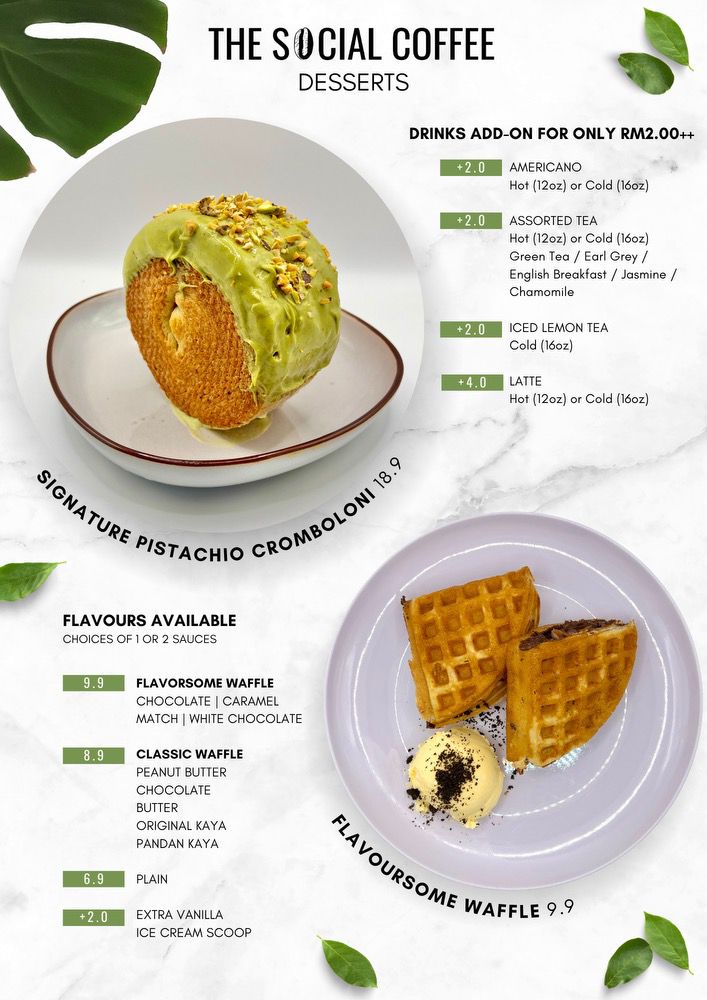 Welcome to The Social Coffee, a delightful café nestled in the heart of Koperasi Shamelin, Kuala Lumpur. This cozy spot offers a warm atmosphere adorned with greenery, making it an ideal retreat for coffee enthusiasts and casual hangouts. The menu boasts a variety of beverages including aromatic coffees, refreshing teas, and homemade snacks, catering to diverse palates. Patrons rave about the crispy waffles, though some dessert options like bomboloni may be limited at times.